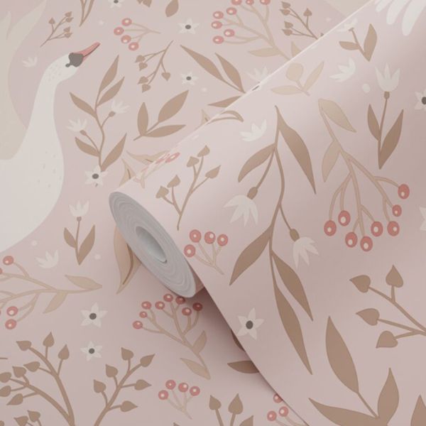 Vrolijk de kinderkamer op met het Estahome Behang - Zwanen - Oudroze. Dit betoverende behang toont sierlijke zwanen die zweven tussen bloemen en takjes op een zachte roze achtergrond. Het dromerige ontwerp in natuurlijke tinten zorgt voor een rustige en speelse sfeer in de kamer. Met een afmeting van 0,53 x 10,05 meter per rol is dit behang ideaal voor één wand of een complete make-over. Dankzij het patroon met herhaling en de stevige kwaliteit is het eenvoudig aan te brengen in iedere baby- of kinderkamer.