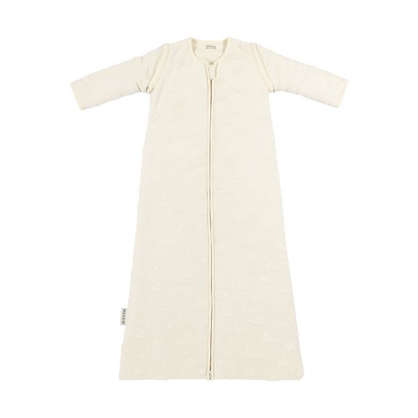 De Meyco Studio Slaapzak Gevoerd - Clouds Natural - 70 cm is een warme en stijlvolle keuze voor baby’s van ongeveer 3 tot 9 maanden. De slaapzak is vervaardigd uit zachte jacquard badstof met een subtiel ingeweven wolkenpatroon, wat hem een luxe uitstraling geeft. De gevoerde constructie maakt deze slaapzak bijzonder geschikt voor herfst- en winternachten.