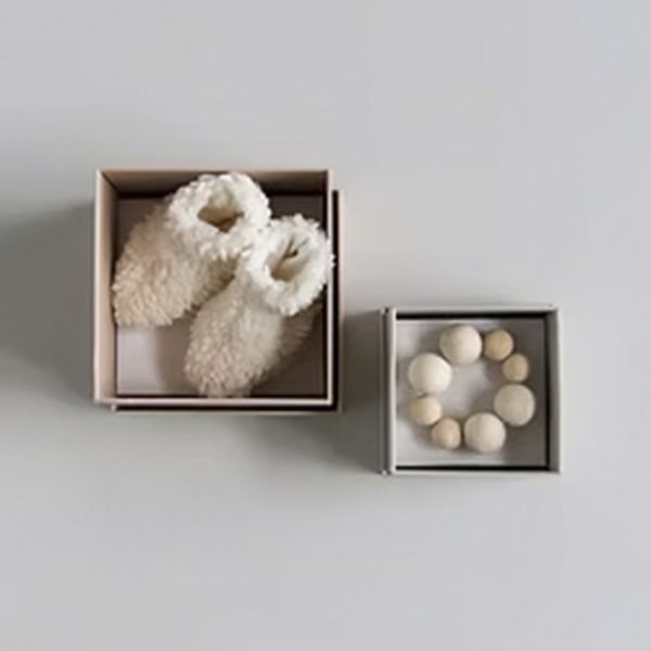 De Nanami New Born Shoes - Teddy - Off White zijn heerlijk zachte en warme babyschoentjes voor pasgeborenen. Ze zijn gemaakt van knuffelzachte teddy stof en houden de kleine voetjes comfortabel warm in de eerste maanden. Dankzij het elastiek rond de enkel blijven ze goed zitten zonder te knellen. De neutrale kleur en het minimalistische design passen perfect bij elke outfit. De schoentjes worden geleverd in een stijlvolle doos, waardoor ze ook ideaal zijn als kraamcadeau.